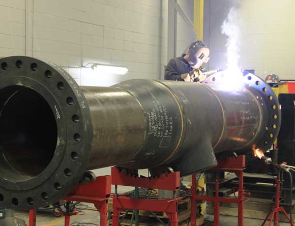 Pressure Piping – Our capabilities include the precision repair or manufacture of pressure components up to 12 meters (40′) in length with diameters of 1.5 meters (60″). Pressure piping shop throughput of 1,600 WDIF per weeks or 6,400 per month.
