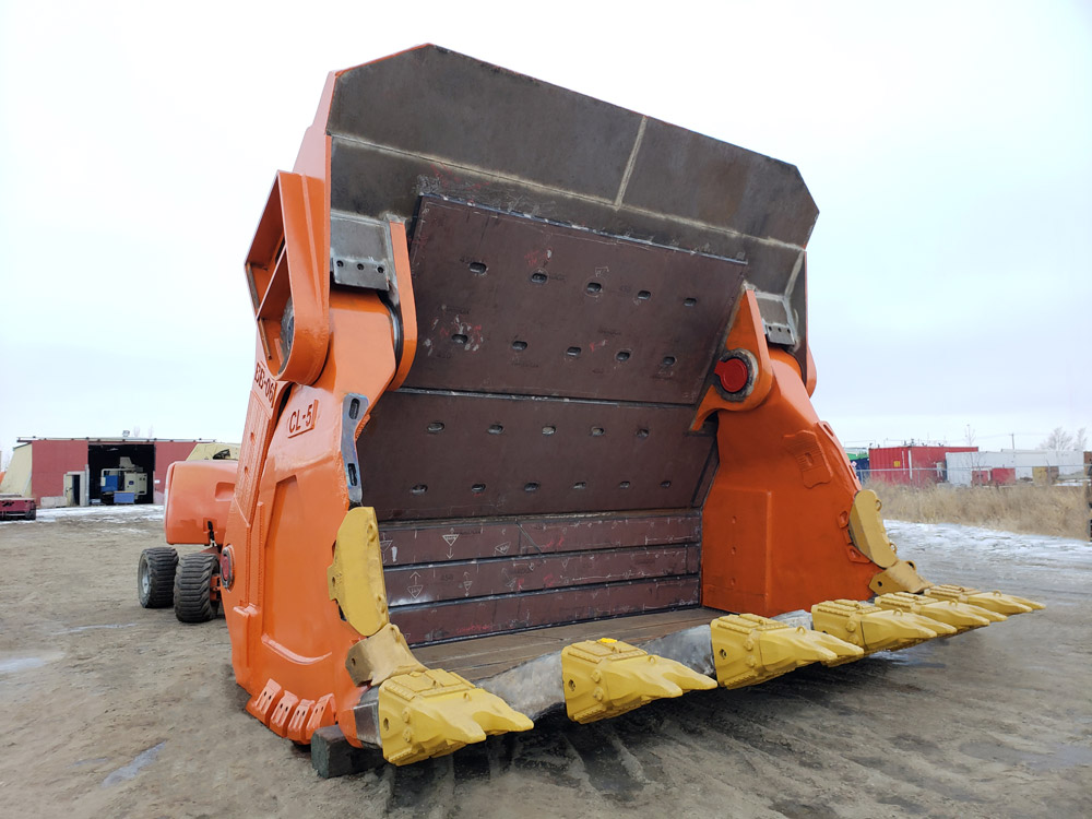 Clam & Backwall ready for transport to a major mining operation in Fort McMurray, AB and mounted on a Hitachi EX8000 Hydraulic Excavator.